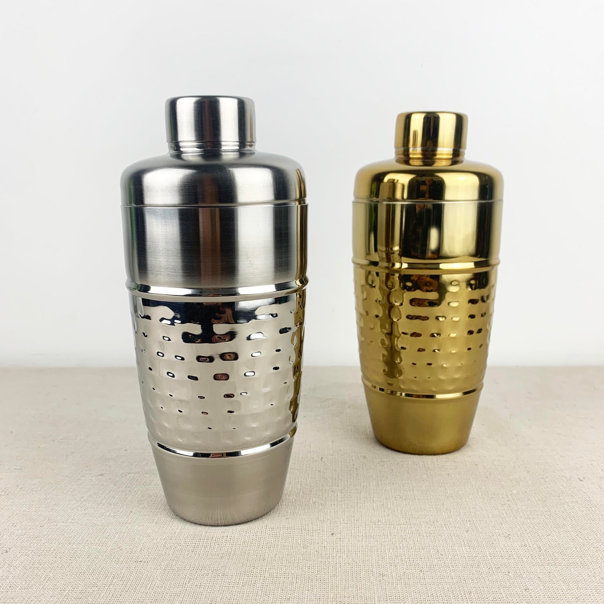 Made from durable stainless steel and featuring a dual design with a smooth finish offering a sleek and modern look, and a hammered central band adding texture and style. A classic addition to the home bar or bar cart.